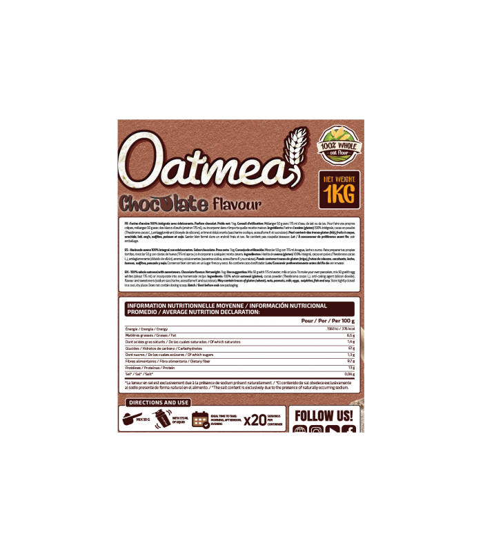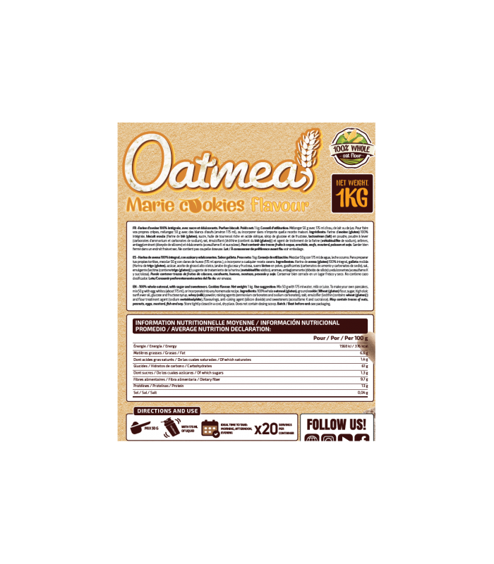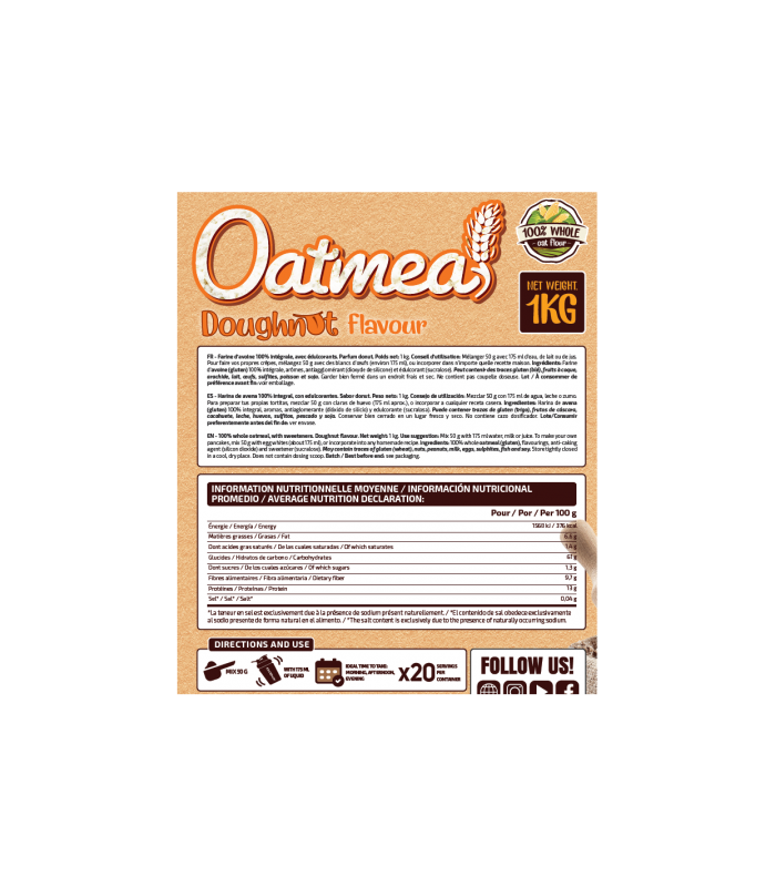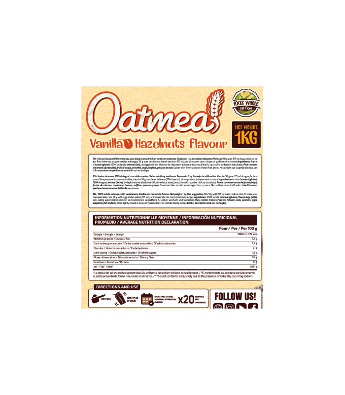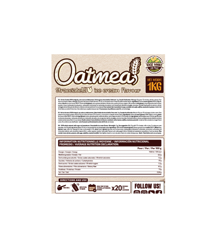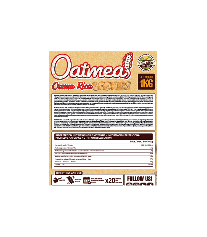 Perfecta para tomar en cualquier momento del día .Harina de avena 100% integral.