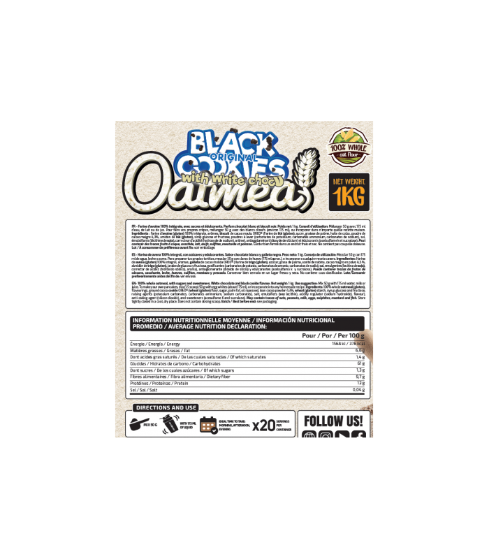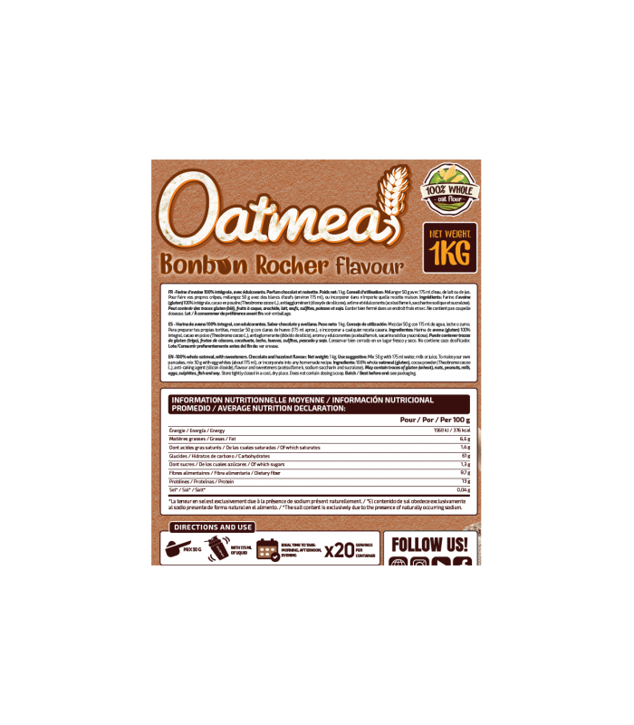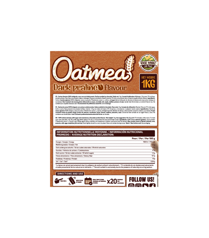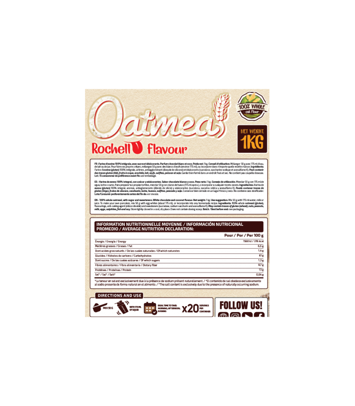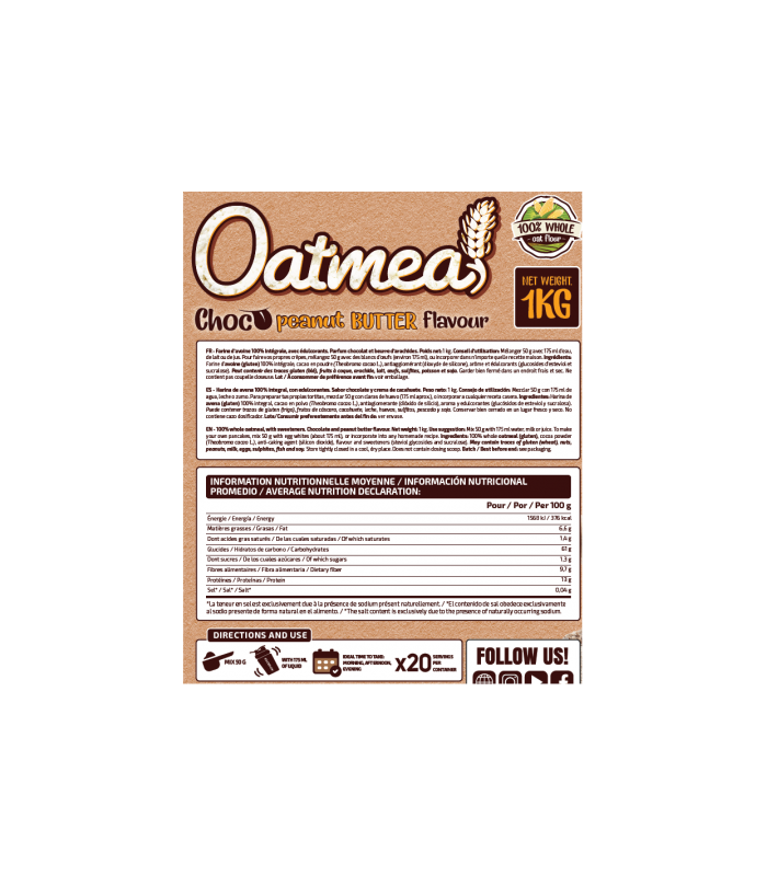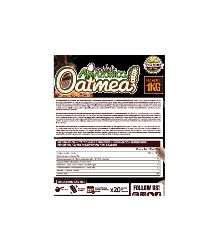 Perfecta para tomar en cualquier momento del día .Harina de avena 100% integral.