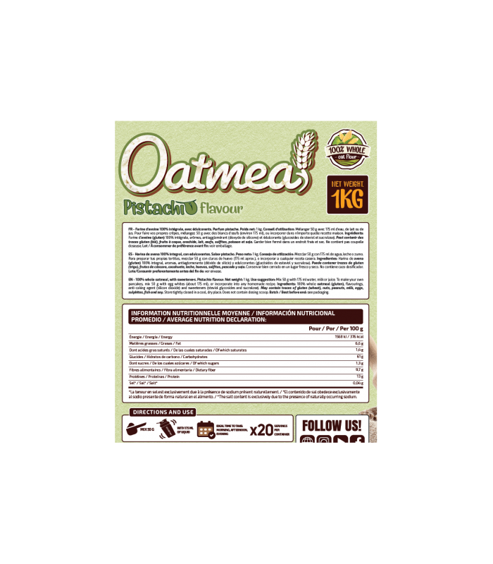 1- bolsa de 1kg de harina de avena IoGenix Delicious Oatmeal