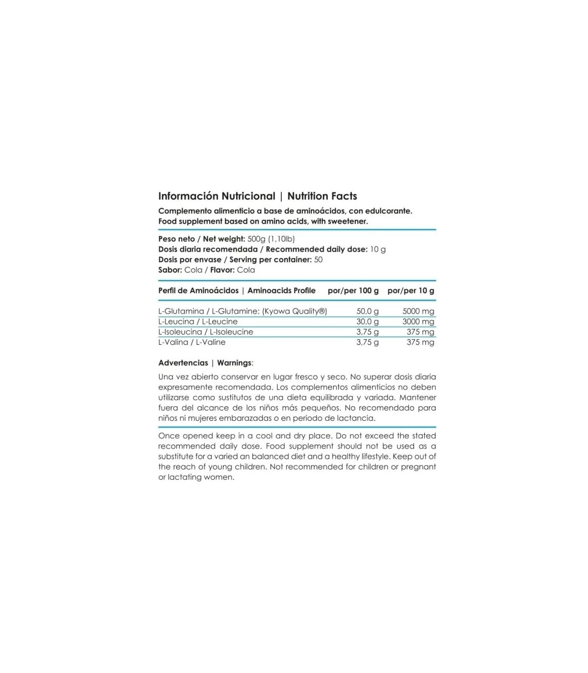 Fórmula concentrada que se compone de aminoácidos ramificados y glutamina, Kyowa quality. en ratio 8-1-1.