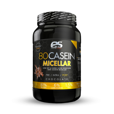 80 CASEIN de ESSENTIAL es la Caseina Micelar MPC. Es un complemento ideal para tomar por las noches. La Caseina nos aporta un extra de proteinas de lenta asimilación donde nos garantiza de 6 a 8 horas de asimilación. Un goteo constante de aminoacidos al torrente sanguíneo.