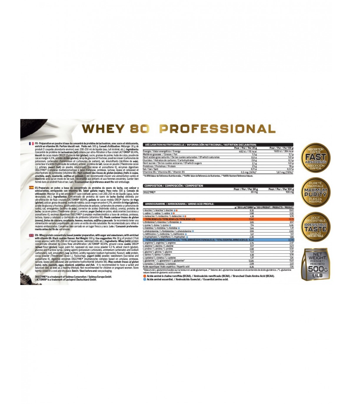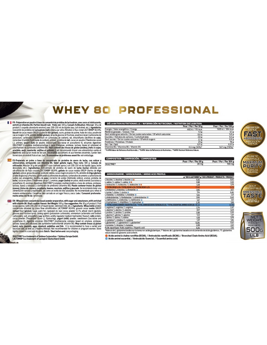 WHEY 80 PROFESSIONAL, uno de los mejores concentrado de proteína de suero del mercado, al combinar materias primas de la máxima calidad con increíbles aromas elegidos por nuestro equipo de expertos. Además de llevar el complejo multienzimático Digezyme® y vitamina B6 para convertirla en una de las proteínas WHEY más completas de la actualidad.