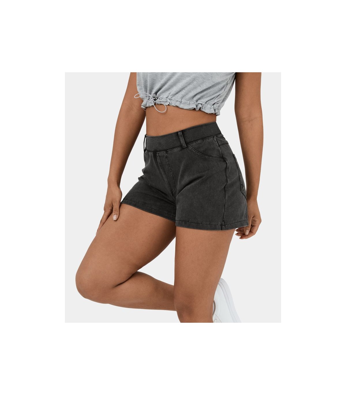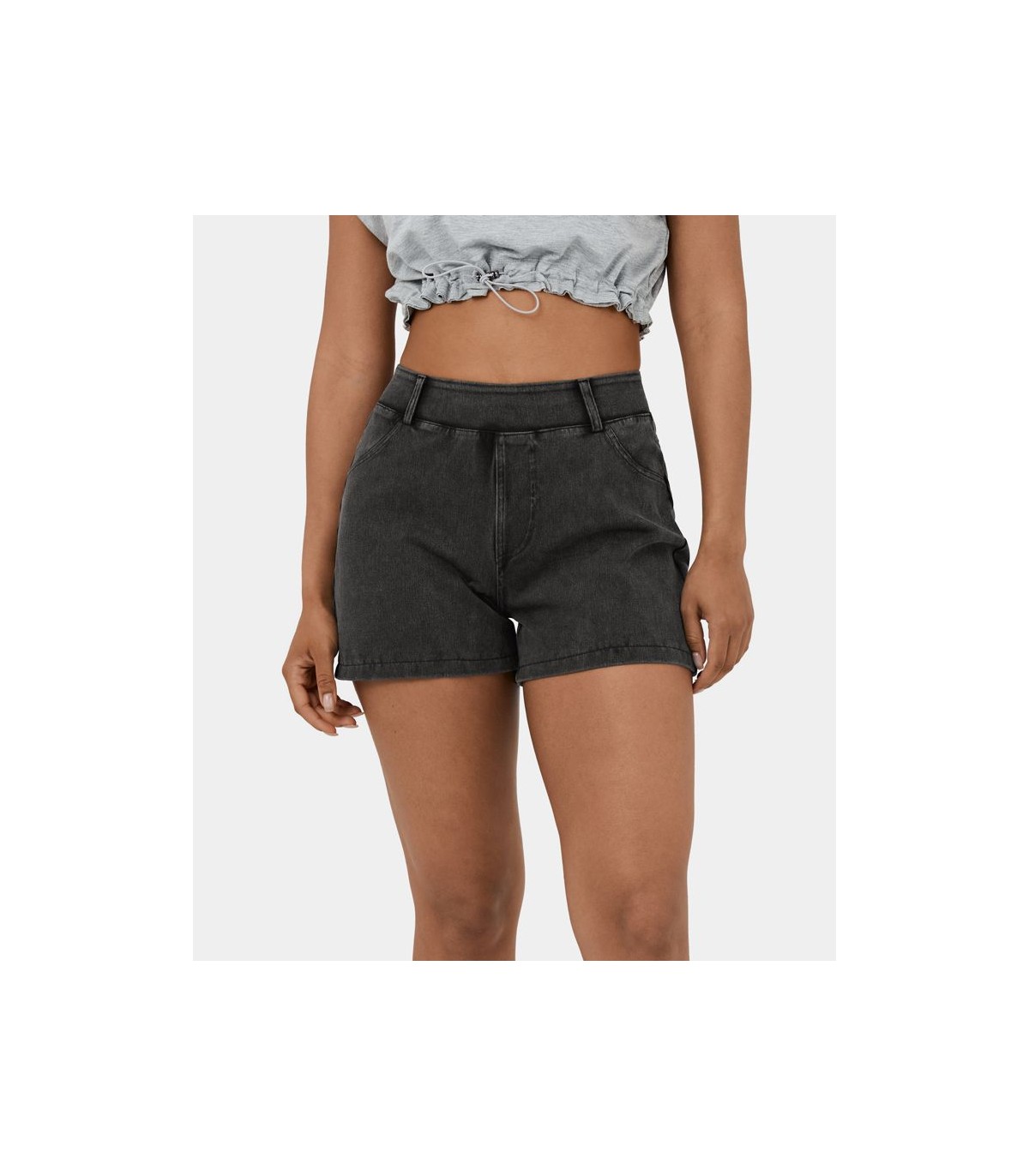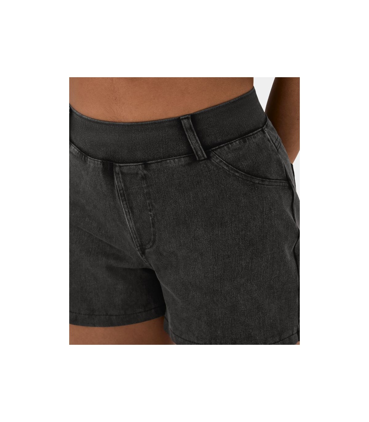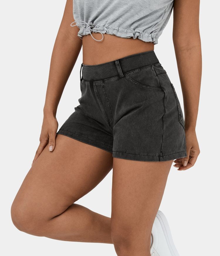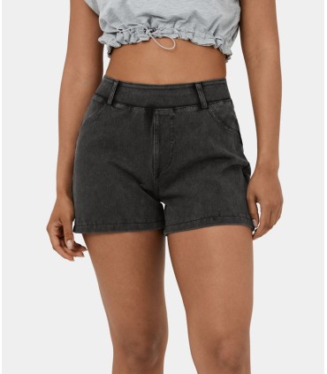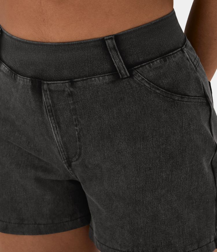 Short tipo jeans mezcla elástica de tiro medio y bolsillo lateral
