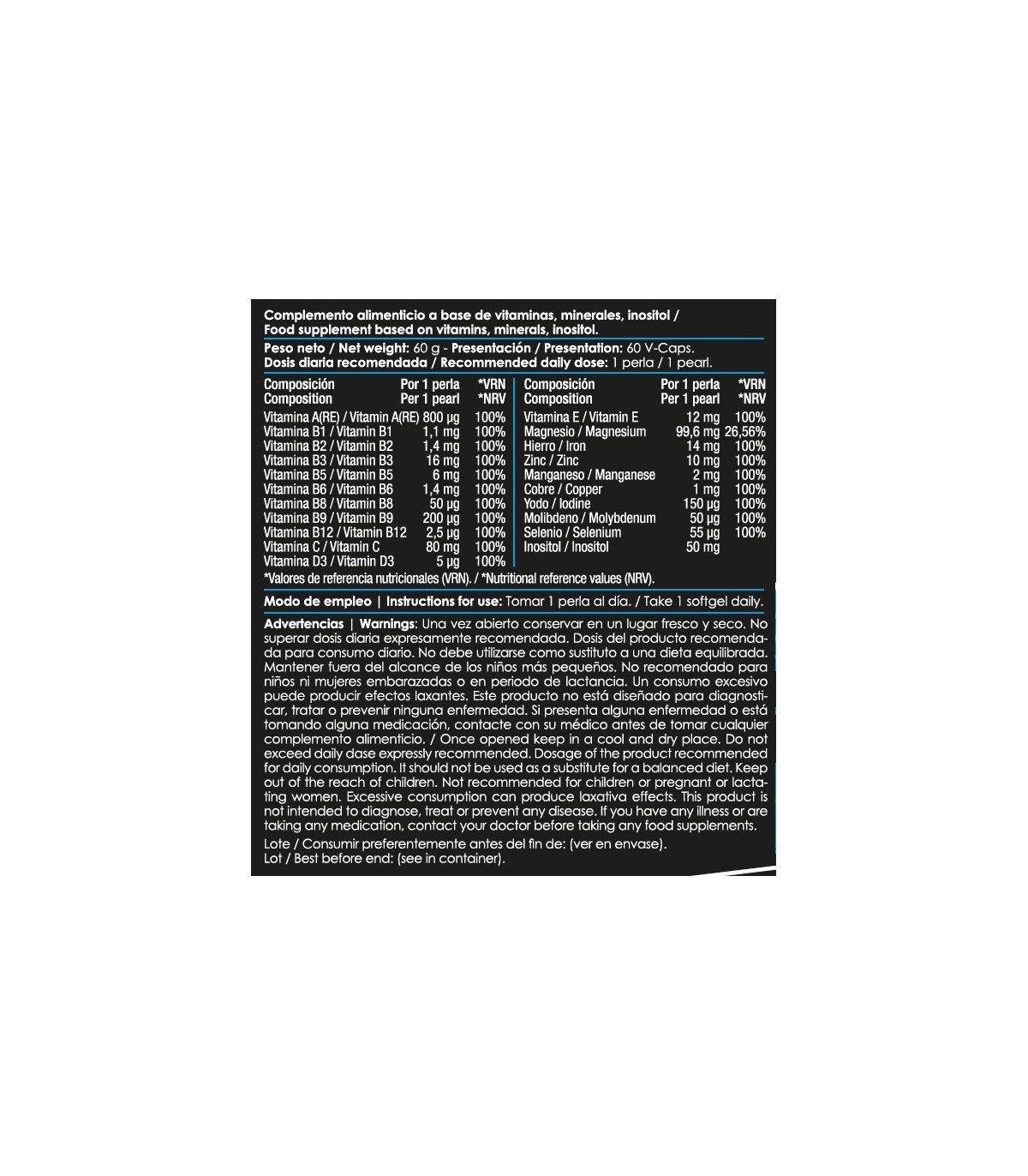 MULTIVITAMINICO VITAMINAS MINERALES ESSENTIAL 60 perlas