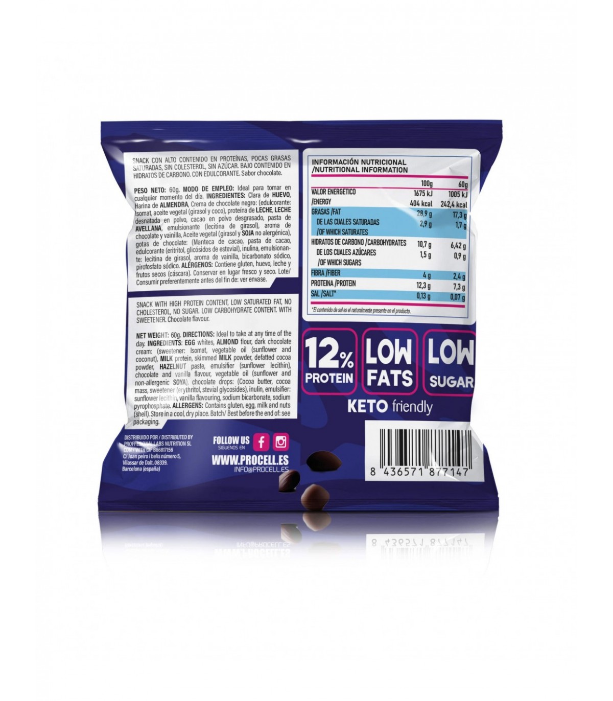 Elaborados a base de harina de almendra, la harina reina de la dieta keto, cacao, proteína de leche MPC y edulcorante.