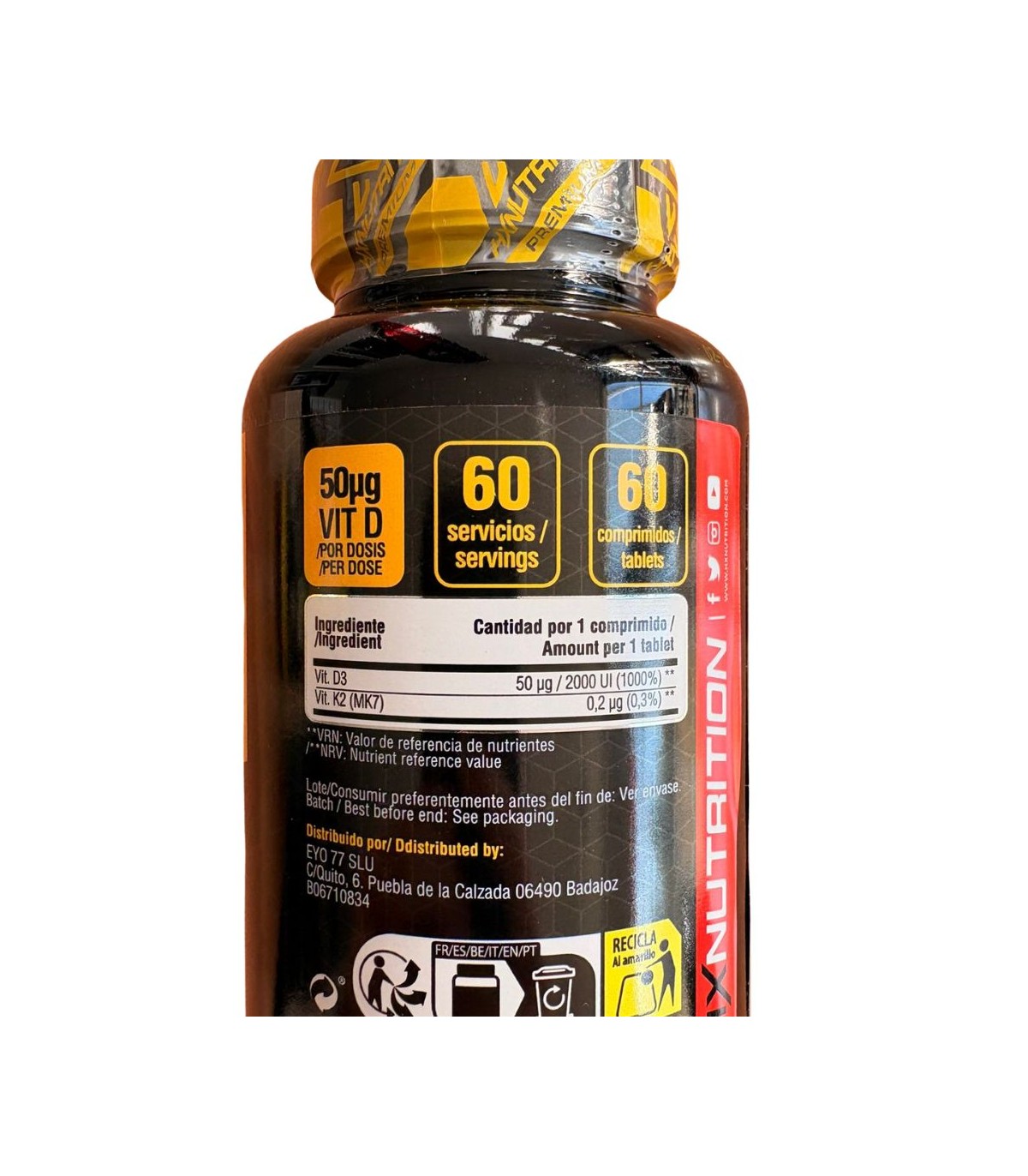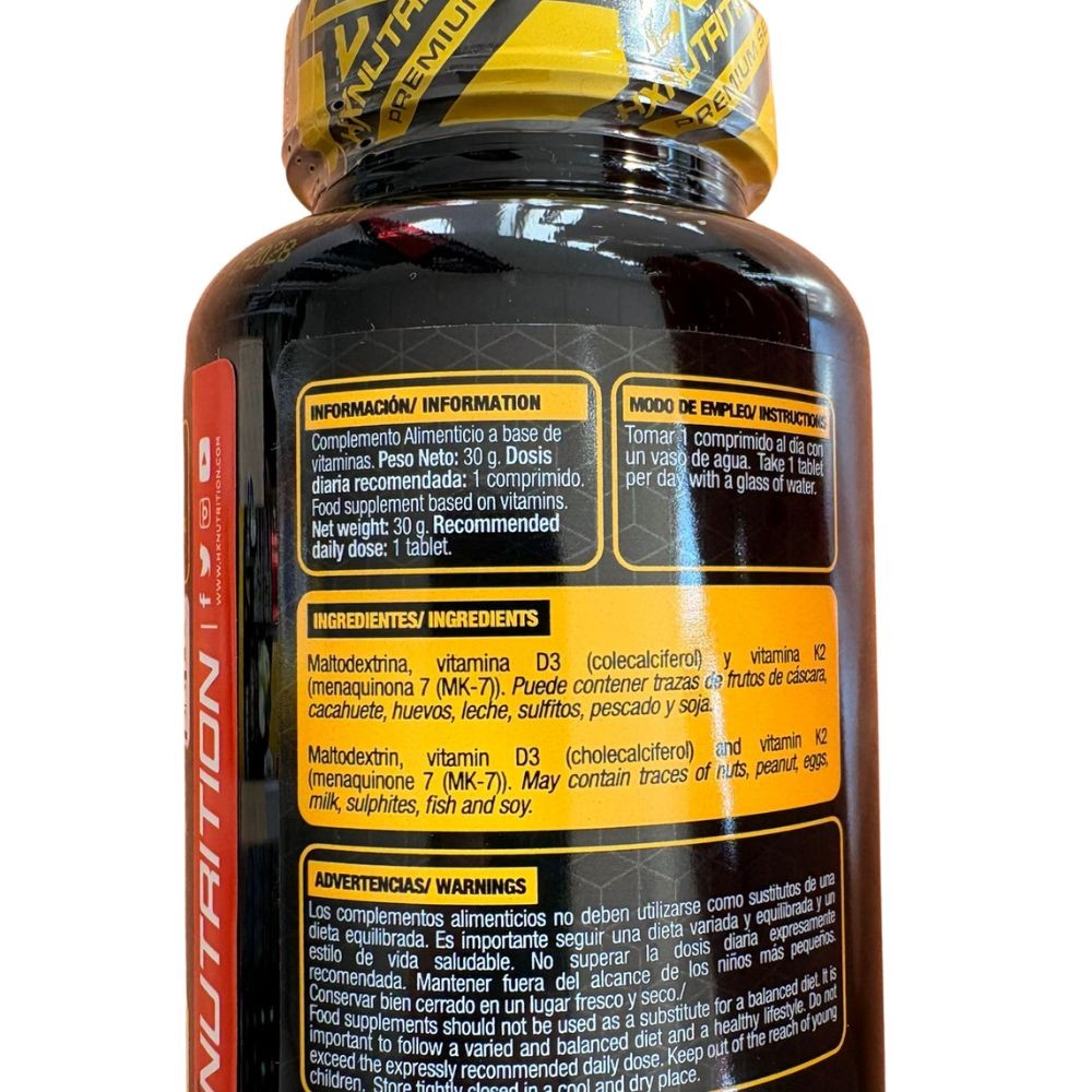 Ingredientes: Maltodextrina, vitamina D3 (colecalciferol) y vitamina K2 (menaquinona 7 (MK-7)). Puede contener trazas de gluten, huevos, leche, pescado y soja.