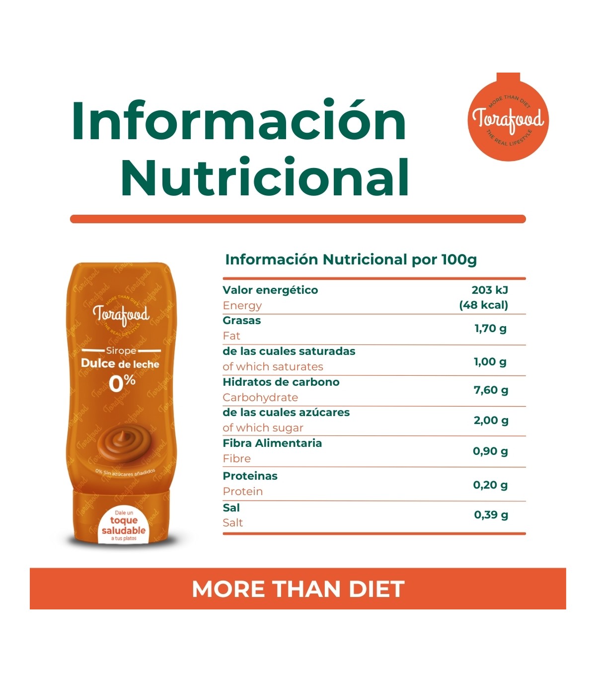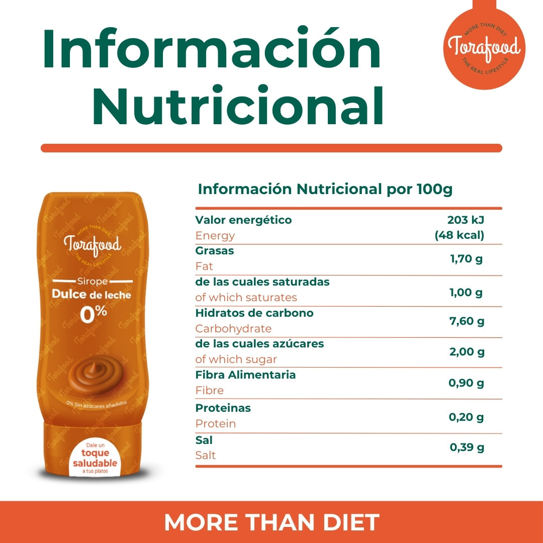 El sirope zero dulce de leche de Torafood está pensado para quienes quieren disfrutar del clásico sabor a dulce de leche sin consumir azúcar añadido. Este sirope zero dulce de leche ofrece una textura fluida y un perfil dulce y cremoso perfecto para recetas dulces.