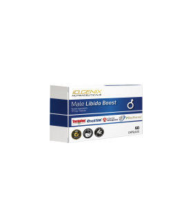 MALE LIBIDO BOOST de la línea NUTRACEUTICALS de iO.GENIX, es un complemento alimenticio a base de extractos de plantas que gracias a su aporte en zinc, selenio y vitamina B6, contribuye a la fertilidad y reproducción normales*, a mantener los niveles de testosterona en sangre y a la espermatogénesis*, además de ayudar a disminuir el cansancio y la fatiga*